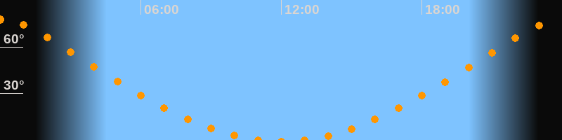 Höchster Stand (Kulmination)23:59 Uhr (h = 77,6°)