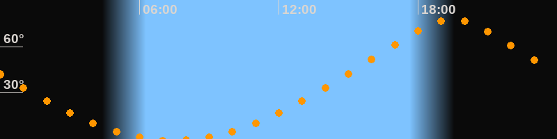 Höchster Stand (Kulmination)19:27 Uhr (h = 77,6°)