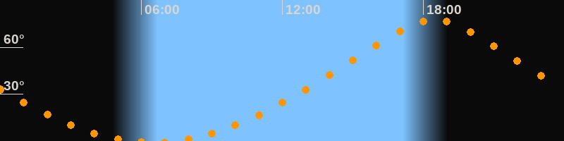 Höchster Stand (Kulmination)18:28 Uhr (h = 77,6°)