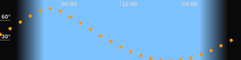 Höchster Stand (Kulmination)04:55 Uhr (h = 77,6°)