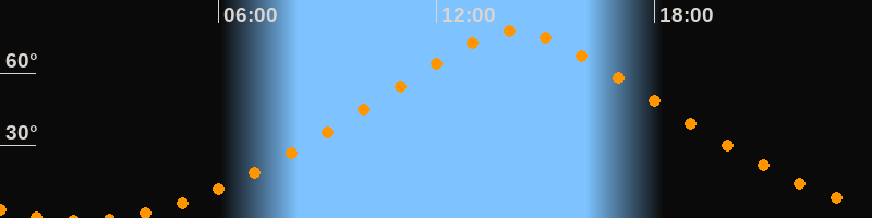 Höchster Stand (Kulmination)14:11 Uhr (h = 77,6°)