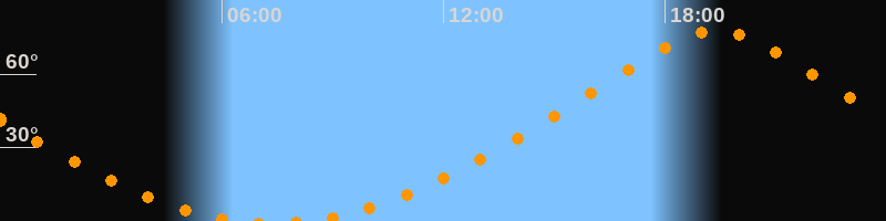 Höchster Stand (Kulmination)19:23 Uhr (h = 77,6°)