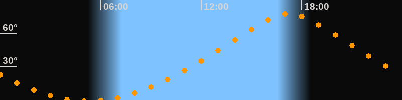 Höchster Stand (Kulmination)17:14 Uhr (h = 77,6°)
