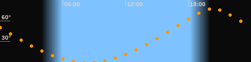 Höchster Stand (Kulmination)20:19 Uhr (h = 77,6°)