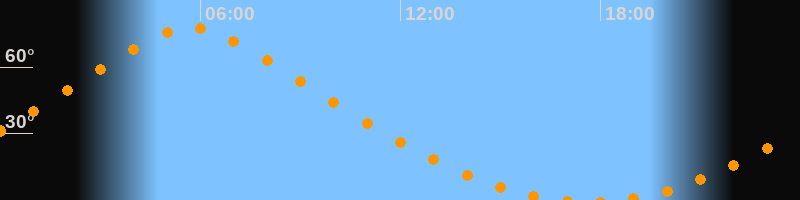Höchster Stand (Kulmination)05:43 Uhr (h = 77,6°)