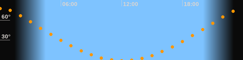 Höchster Stand (Kulmination)00:03 Uhr (h = 77,6°)