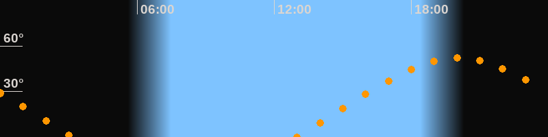 | Aufgang | 12:55 Uhr im Osten (αAz = 68,9°) |