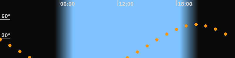 | Aufgang | 12:53 Uhr im Osten (αAz = 68,9°) |