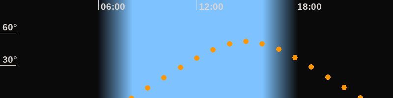 | Aufgang | 07:54 Uhr im Osten (αAz = 68,9°) |