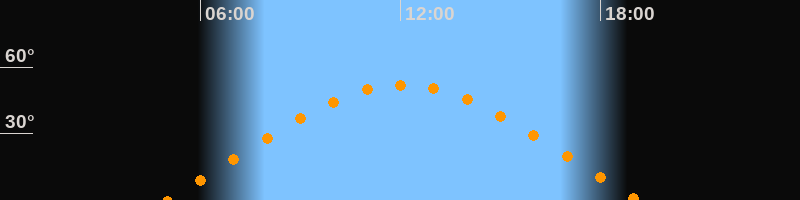 | Höchster Stand (Kulmination) | 12:04 Uhr (h = 52°) |
