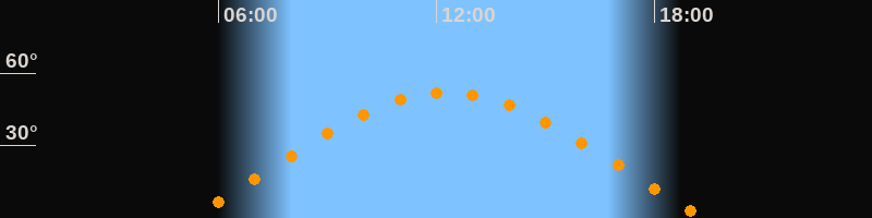 | Höchster Stand (Kulmination) | 12:17 Uhr (h = 52°) |
