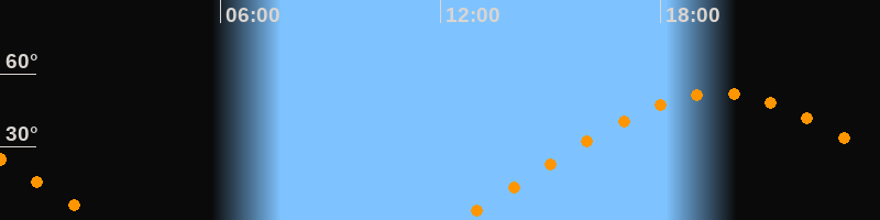 | Aufgang | 12:28 Uhr im Osten (αAz = 68,9°) |