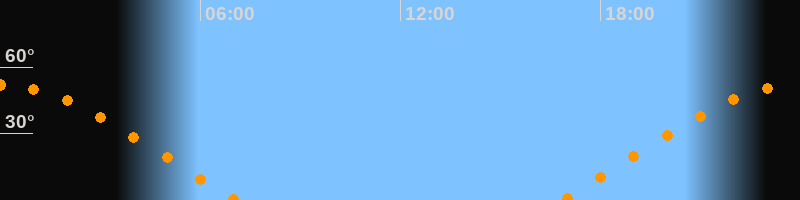 | Untergang | 07:06 Uhr im Westen (αAz = 291,1°) |