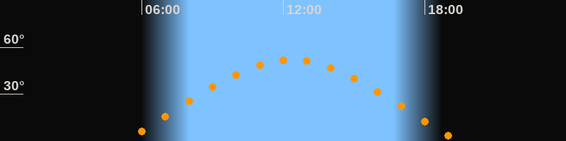 | Höchster Stand (Kulmination) | 12:20 Uhr (h = 52°) |
