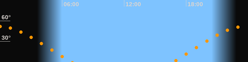 | Aufgang | 16:40 Uhr im Osten (αAz = 68,9°) |