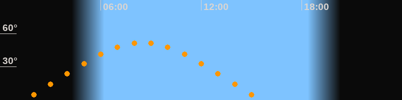 | Höchster Stand (Kulmination) | 08:29 Uhr (h = 52°) |