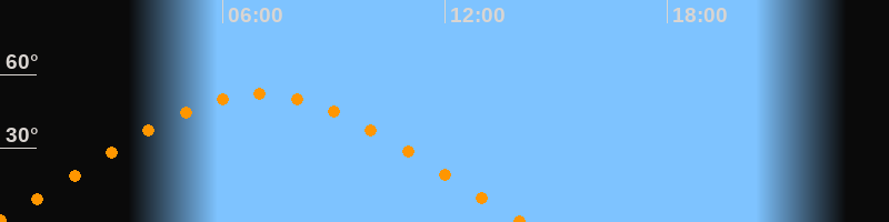 | Untergang | 14:07 Uhr im Westen (αAz = 291,1°) |
