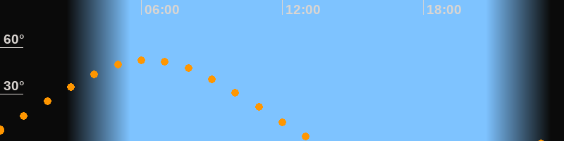 | Höchster Stand (Kulmination) | 06:17 Uhr (h = 52°) |