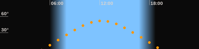 | Höchster Stand (Kulmination) | 12:15 Uhr (h = 52°) |