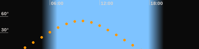 | Höchster Stand (Kulmination) | 09:44 Uhr (h = 52°) |