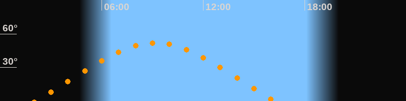 | Aufgang | 02:03 Uhr im Osten (αAz = 68,9°) |