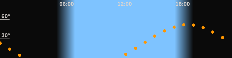 | Aufgang | 12:16 Uhr im Osten (αAz = 68,9°) |