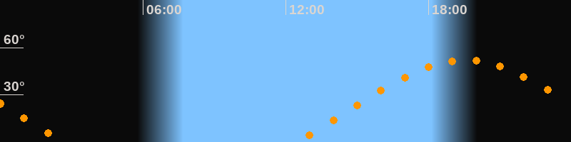 | Aufgang | 12:25 Uhr im Osten (αAz = 68,9°) |