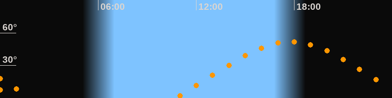 | Aufgang | 10:41 Uhr im Osten (αAz = 68,9°) |
