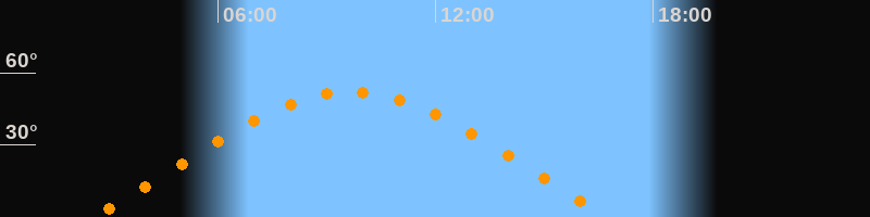 | Höchster Stand (Kulmination) | 09:40 Uhr (h = 52°) |