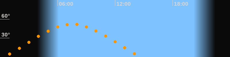 | Höchster Stand (Kulmination) | 07:31 Uhr (h = 52°) |