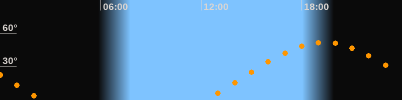 | Aufgang | 12:13 Uhr im Osten (αAz = 68,9°) |