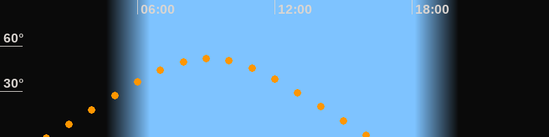 | Höchster Stand (Kulmination) | 09:05 Uhr (h = 52°) |