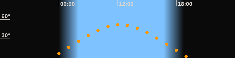 | Höchster Stand (Kulmination) | 12:15 Uhr (h = 52°) |