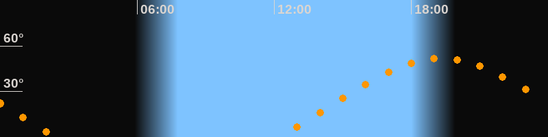 | Aufgang | 12:11 Uhr im Osten (αAz = 68,9°) |