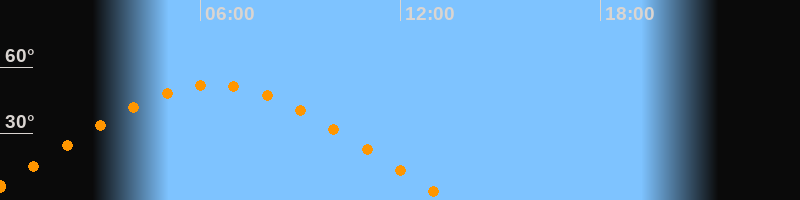 | Höchster Stand (Kulmination) | 06:23 Uhr (h = 52°) |