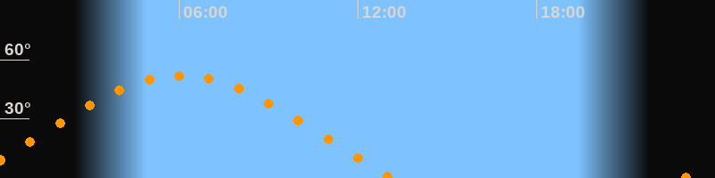 | Höchster Stand (Kulmination) | 06:03 Uhr (h = 52°) |