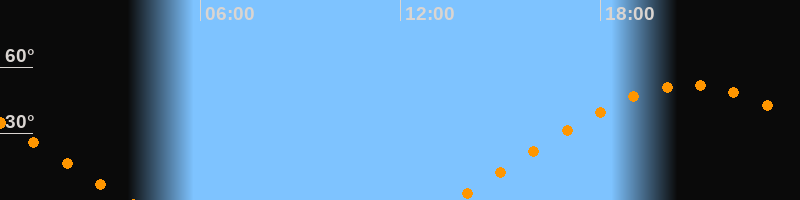 | Aufgang | 13:35 Uhr im Osten (αAz = 68,9°) |
