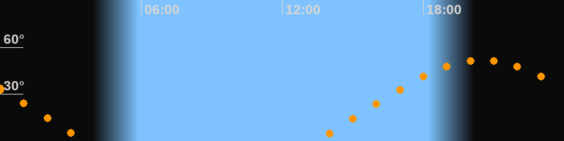 | Aufgang | 13:23 Uhr im Osten (αAz = 68,9°) |