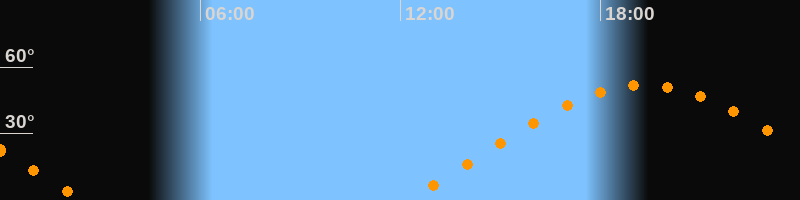 | Aufgang | 12:12 Uhr im Osten (αAz = 68,9°) |