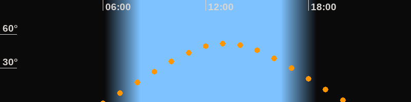 | Höchster Stand (Kulmination) | 13:09 Uhr (h = 52°) |