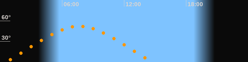 | Höchster Stand (Kulmination) | 07:39 Uhr (h = 52°) |