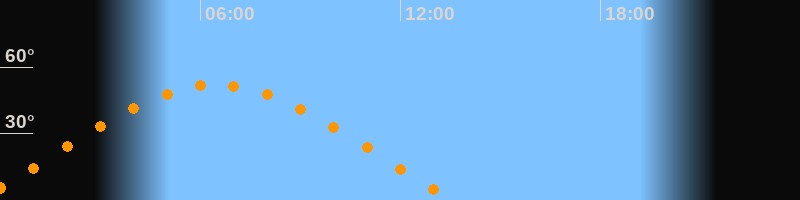 | Höchster Stand (Kulmination) | 06:28 Uhr (h = 52°) |