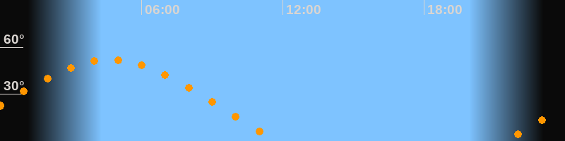 | Aufgang | 21:27 Uhr im Osten (αAz = 68,9°) |