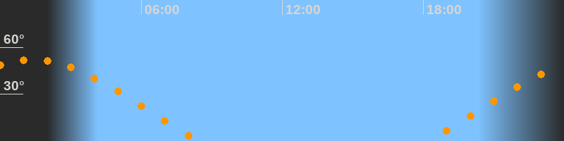 | Aufgang | 18:11 Uhr im Osten (αAz = 68,9°) |