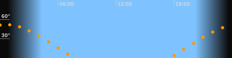 | Aufgang | 17:27 Uhr im Osten (αAz = 68,9°) |