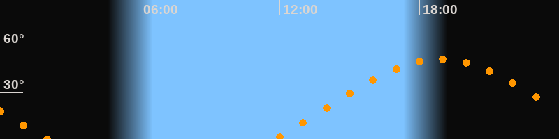 | Aufgang | 11:45 Uhr im Osten (αAz = 68,9°) |