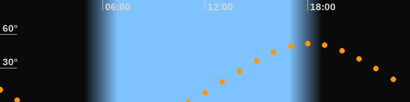 | Höchster Stand (Kulmination) | 18:06 Uhr (h = 52°) |