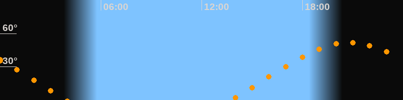 | Aufgang | 13:41 Uhr im Osten (αAz = 68,9°) |