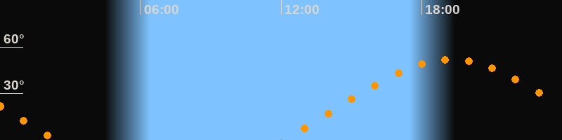 | Aufgang | 12:07 Uhr im Osten (αAz = 68,9°) |
