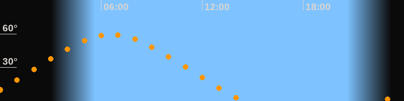 | Höchster Stand (Kulmination) | 06:36 Uhr (h = 59,4°) |